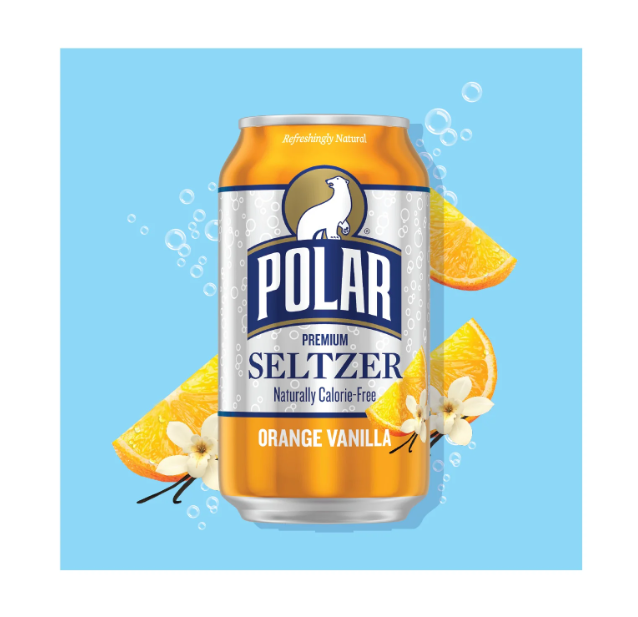 Orange Vanilla Polar Seltzer is two classic flavors combined into one genius combination…like a light and bright 100% natural calorie free creamsicle. Polar Seltzer Premium Sparkling Water. Tiny Bubbles: The sparkle sets us apart. We've been perfecting the process of making our signature bubbles, with their long-lasting carbonation and crispness, since 1882. The bubbles are created by carefully dissolving Co2 into water at high pressure and freezing temperatures without exposing the flavors to oxygen. Other people may add sodium or sweeteners to shortcut the road to quality – we do not. Natural Flavors: The taste of our seltzers is defined by the quality ingredients of the ingredients we used. Our approach is to use only the highest-quality, proprietary combinations of flavors and aromas for depth and complexity. These ingredients are extracted and distilled from natural sources (such as lemon peel, lime, mint, etc.) to create highly concentrated “essences”. Relying on copious amounts of these very precious oils, we never skimp when it comes to taste. Triple-Filtered & Locally Sourced Water: Our water is locally sourced and then triple-filtered with our state-of-the-art process to ensure a consistent and authentic Polar Seltzer taste. NO sodium, fluoride, or other funny business added. This is why Polar Seltzer makes for health smart hydration. Family Made Since 1882: Just water, zillions of tiny bubbles, and great taste. Our family has been crafting Polar Seltzer with these same ingredients since 1882. That’s 138 years to perfect what our great-great-grandfather called the world’s best-tasting bubble recipe. At Polar Beverages we work hard to keep things uncomplicated, refreshing and endlessly creative. Take a sip, and let us know.