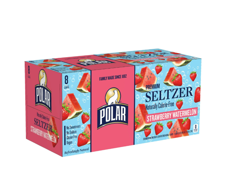 Polar Zero Calorie Strawberry Watermelon Sparkling Seltzer Water, 12 fl oz, 8 Pack Cans