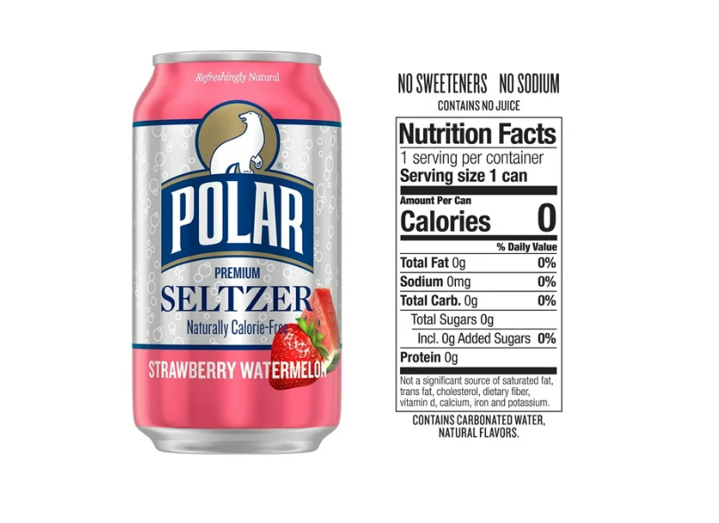 Polar Seltzer is made of 3 simple ingredients water, bubbles & natural fruit flavors