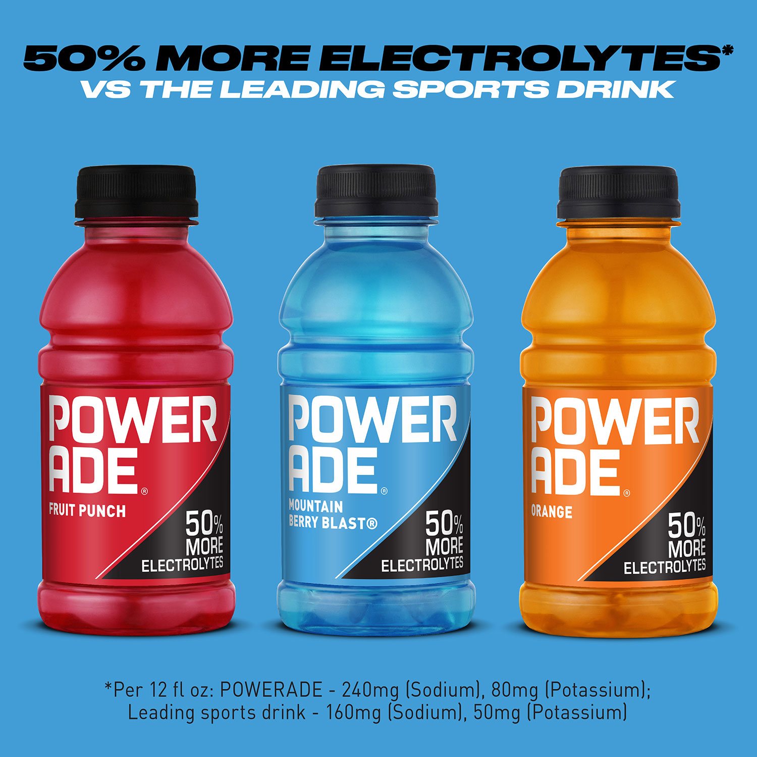 *Per 12 fl oz: POWERADE - 240mg (Sodium), 80mg (Potassium); Leading sports drink - 160mg (Sodium), 50mg (Potassium)
