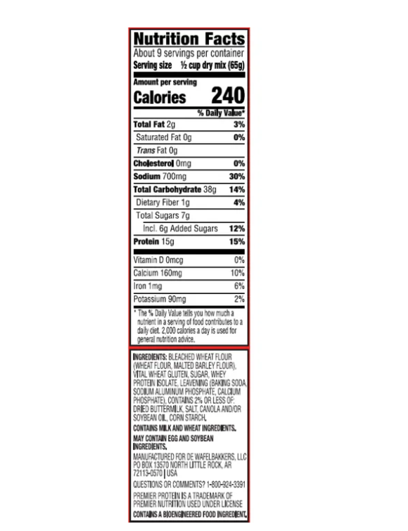 - One 20 oz box of Premier Protein Buttermilk Complete Pancake Mix
