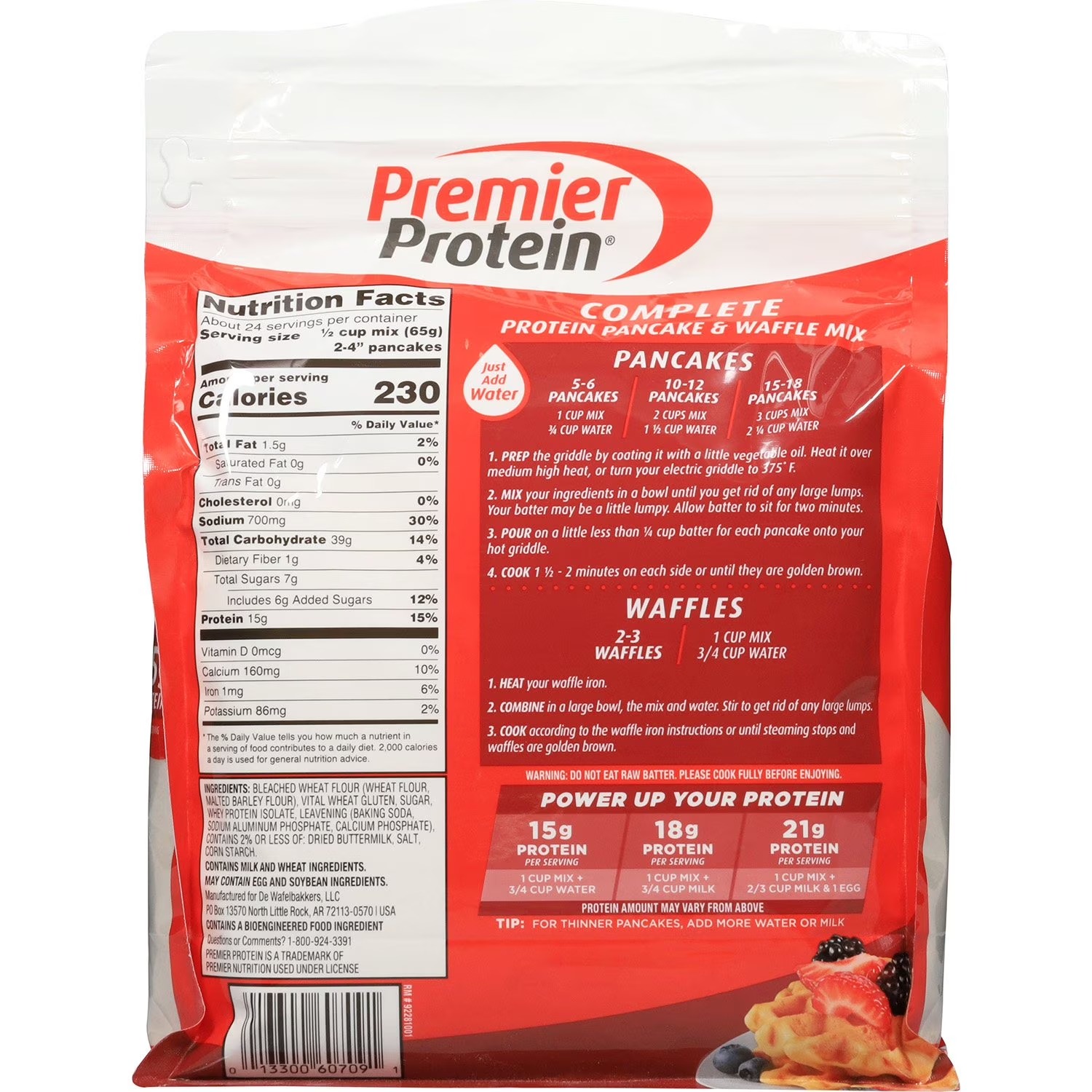Start your day with Premier Protein Buttermilk Complete Pancake and Waffle Mix, offering 15 grams of protein per serving in a convenient, just-add-water formula. This mix is perfect for creating fluffy pancakes or waffles that fuel your morning with delicious taste and essential nutrients.