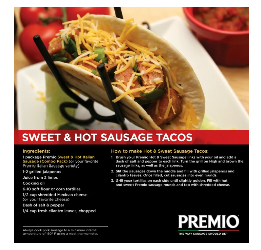 Pork, Water, Less than 2% of the following: Sugar, Salt, Paprika, Spices (including red pepper & fennel), Potassium Salt, Natural Flavors, Extractives of Paprika.