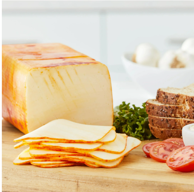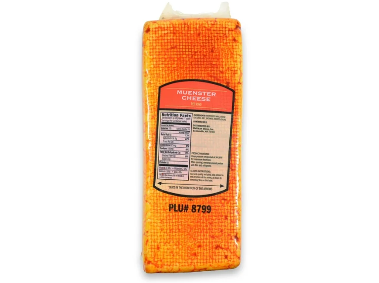 Prima Della Muenster Cheese adds something delicious to your next meal. Our cheese is well recognized by its characteristic orange rind and features a mildly tangy and buttery flavor that works well in a variety of culinary applications. A good source of calcium and protein. It's incredibly smooth texture melts readily making it a perfect addition to grilled chicken breasts and burgers. Freshly sliced in the store, this cheese would also be an excellent addition to a gourmet sandwich piled high with your favorite meats and veggies. Elevate your next meal with Prima Della Muenster Cheese. Plastic wrapped. Our stores may use some of the following ingredients: peanuts, eggs, soy, tree nuts, wheat, dairy products, fish, and/or shellfish. Even if these are not listed on the ingredient label, please be aware that all products may have come in contact with these ingredients.