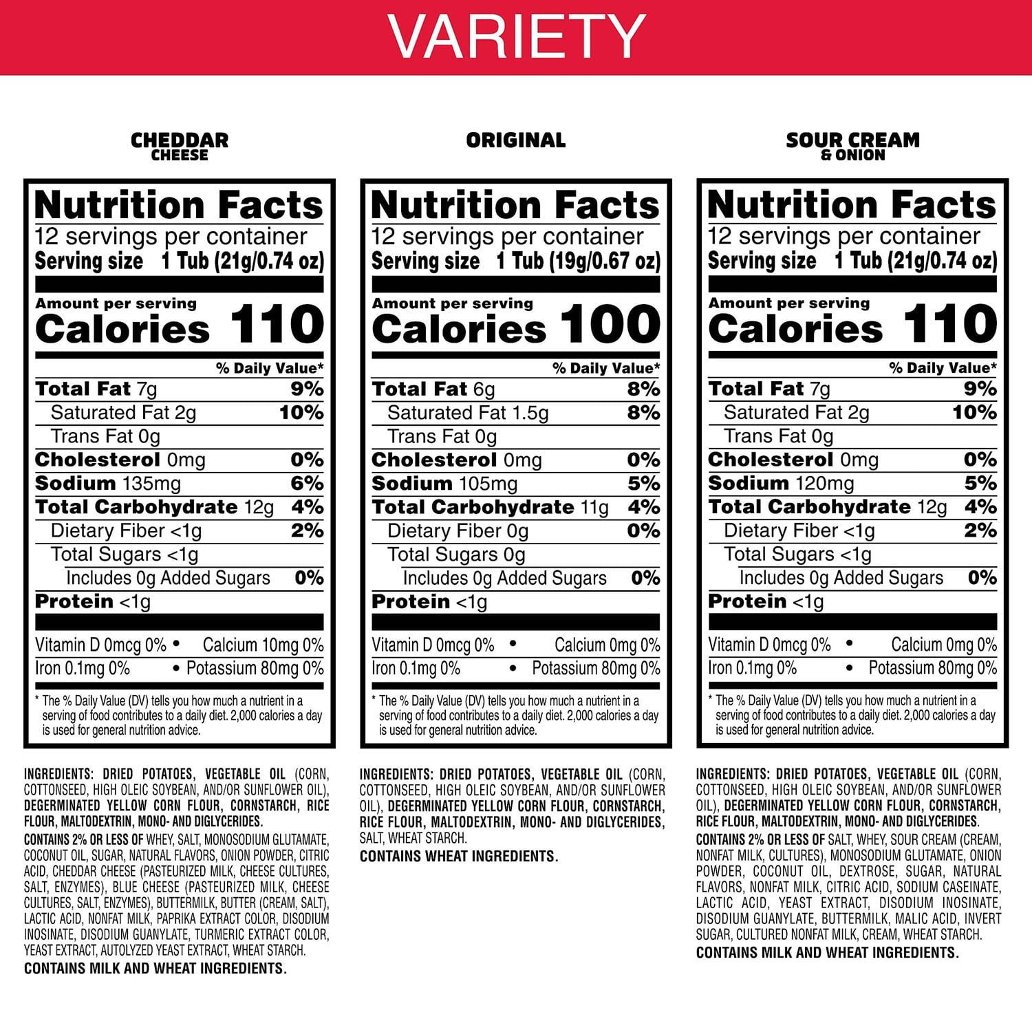 Enjoy the crisp, crunchy, hit-the-spot taste of potato and your choice of 3 delicious flavors. This variety pack includes single-serve cups of Original, Cheddar Cheese, and Sour Cream and Onion flavors. Insanely light, crispy and never greasy, they’re bursting with salty, savory flavor.