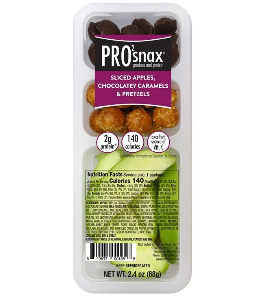 PRO2snax Sliced Apples, Chocolate Caramels, and Pretzels, 2.4 oz