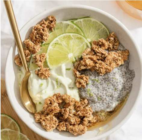 Ancient Grain Granola is prepared with unrefined coconut sugar, a low-glycemic sweetener that won’t make you sluggish as the day goes on