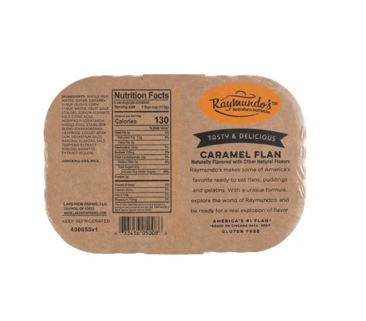 Give your family a tasty treat they will love with Raymundo's Caramel Flan Dessert Cups, 4 oz, 6 Pack. Each refrigerated single serve plastic cup is enjoyed as a creamy, caramel-topped Spanish and Latin dessert. Made with high-quality ingredients and a generous drizzle of sweet caramel, these flan cups are a delicious and convenient 140 calorie indulgence. Raymundo's makes some of America's favorite ready to eat flans, puddings, and gelatins. We've been doing it the same way for generations - in small, carefully crafted kettle batches. Explore the world of Raymundo's and discover our real hand-crafted quality. Peanut-Free. Contains: Milk, Eggs.