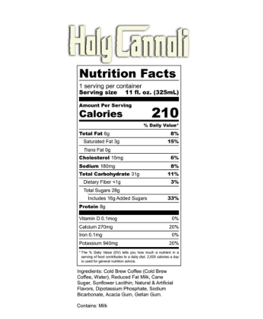 Bones Coffee's Holy Cannoli Cold Brew Latte is a sweet, creamy delight! It combines smooth cold brew coffee with creamy milk and the tasty flavor of cannoli. With hints of sweet pastry and vanilla, this drink gives you a delicious taste of dessert in every sip. Our artisan cold brew latte features carefully selected 100% Arabica beans, all ethically sourced and expertly roasted.
