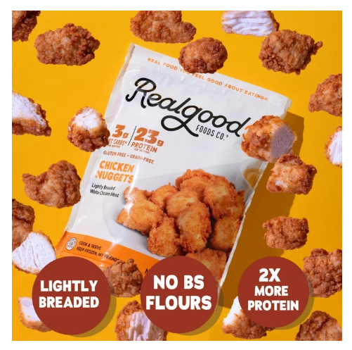Realgood Foods Lightly Breaded Chicken Nuggets are packed with Protein 23 Grams per serving!