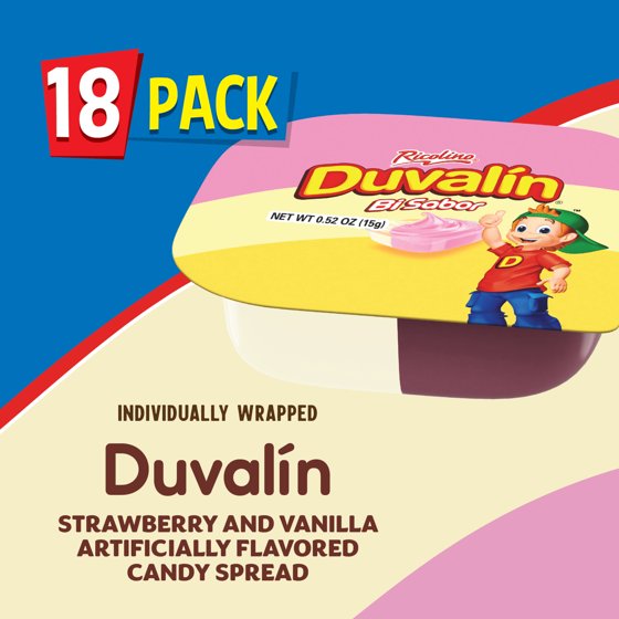 Ricolino Duvalin Strawberry and Vanilla Candy Spread, 9.36 oz, 18 Count Box
