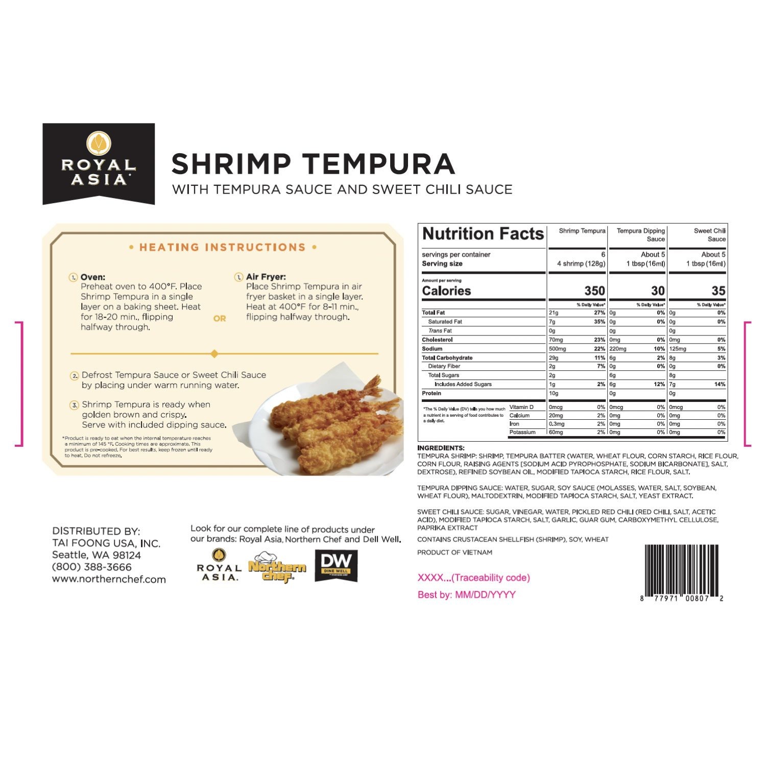 Royal Asia Farm Raised Shrimp Tempura with Tempura and Sweet Chili Sauce, Frozen, 24 ct. per box, 2.07 lbs.
