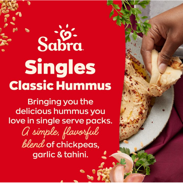 Sabra Singles Classic Hummus Dip, Non-GMO, Gluten Free, Vegan On-the-Go Hummus Spread, 2 oz Cup (6 Count)