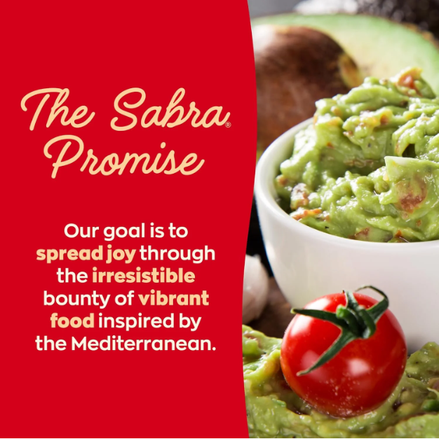 Sabra guacamole crafted with ripe avocados, lime juice and cilantro for a taste like homemade