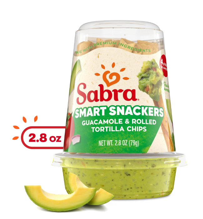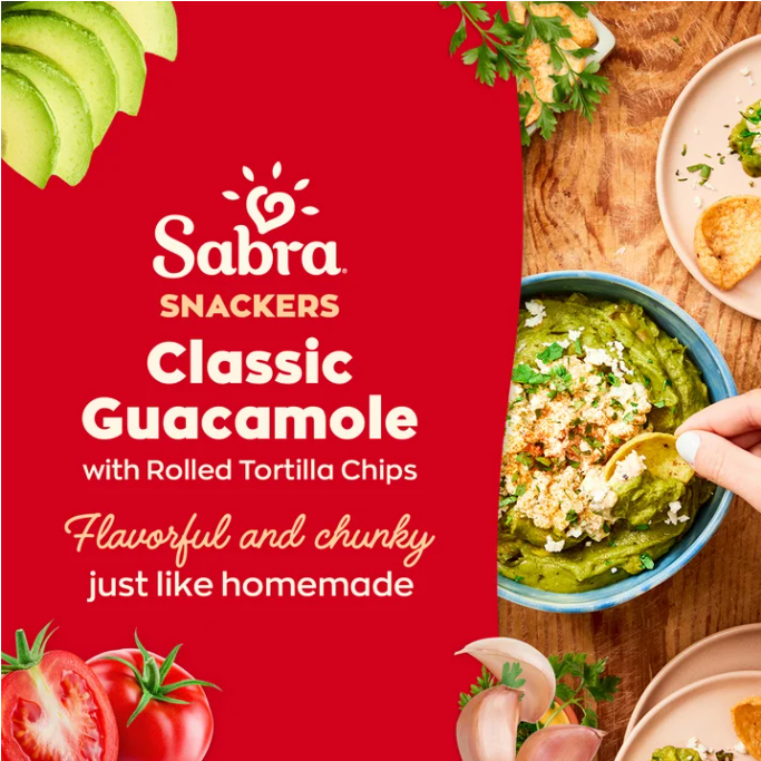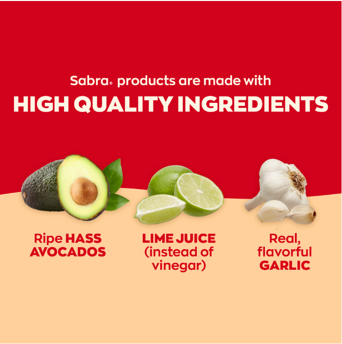 Sabra guacamole crafted with ripe avocados, lime juice and cilantro for a taste like homemade