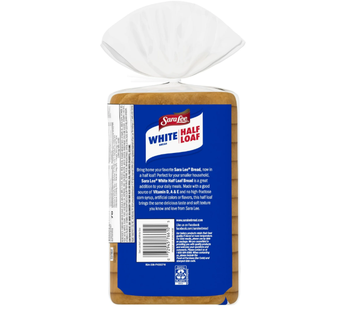 Bring home your favorite Sara Lee Bread, now in a half loaf! Perfect for your smaller household, Sara Lee White Half Loaf Bread is a great addition to your daily meals. Made with a good source of Vitamins A, D, & E and no high fructose corn syrup, artificial colors or flavors, this half loaf brings the same delicious taste and soft texture you know and love from Sara Lee. Enjoy Sara Lee Half Loaf right out of the bag for convenient meals to fit your busy schedule. Give yourself the taste you love and the goodness you want, without the concern of letting a full loaf go to waste, with Sara Lee White Half Loaf.