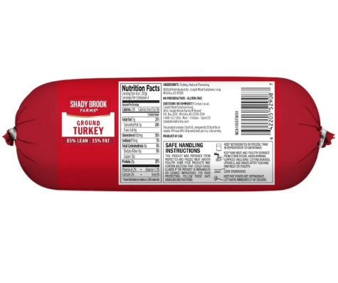- Shady Brook Farms® 85% Lean / 15% Fat Ground Turkey Roll, Fresh, 1 lb.