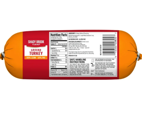 - Shady Brook Farms® 90% Lean / 10% Fat Ground Turkey Roll, Fresh, 1 lb.