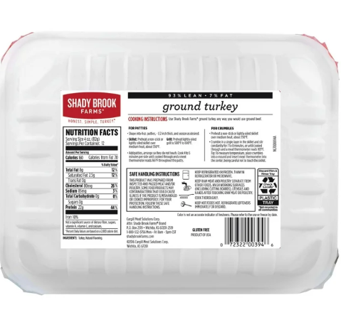- Shady Brook Farms® 93% Lean / 7% Fat Ground Turkey Tray, Fresh, 1 lb.