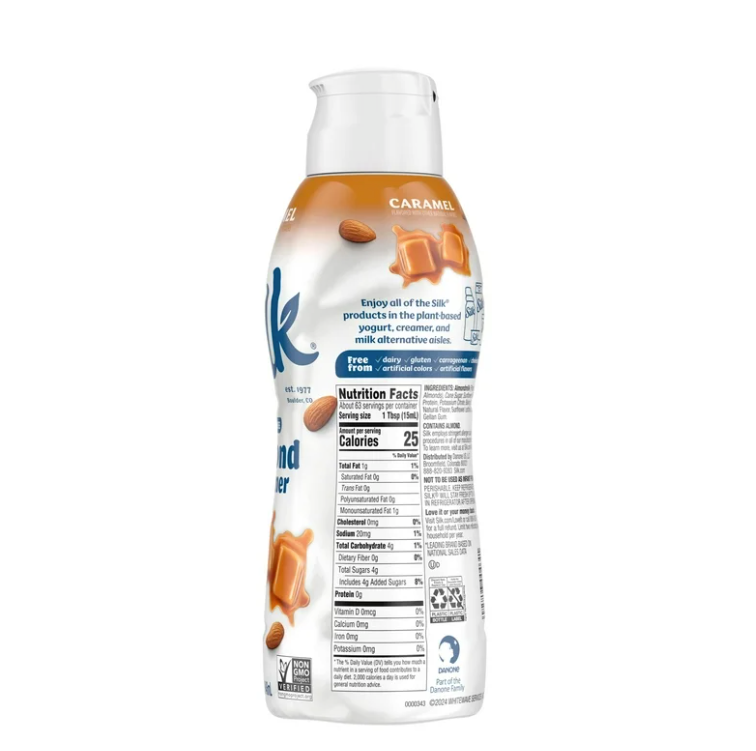 - Lusciously Creamy: One 32 fl oz Silk Caramel Dairy Free, Gluten Free Almond Creamer Carton