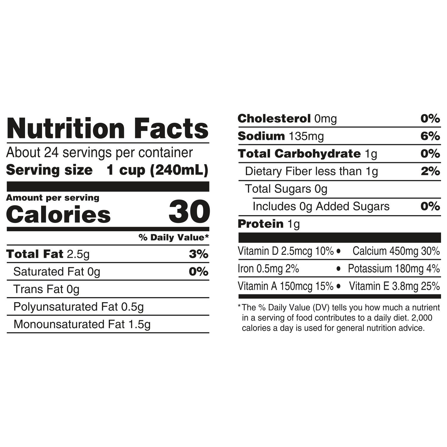 Silk Unsweetened Original Almondmilk has 450 mg of calcium per cup compared to reduced-fat dairy milk which has 293 mg of calcium per cup. USDA National Nutrient Database for Standard Reference. Data consistent with typical reduced fat dairy milk.
