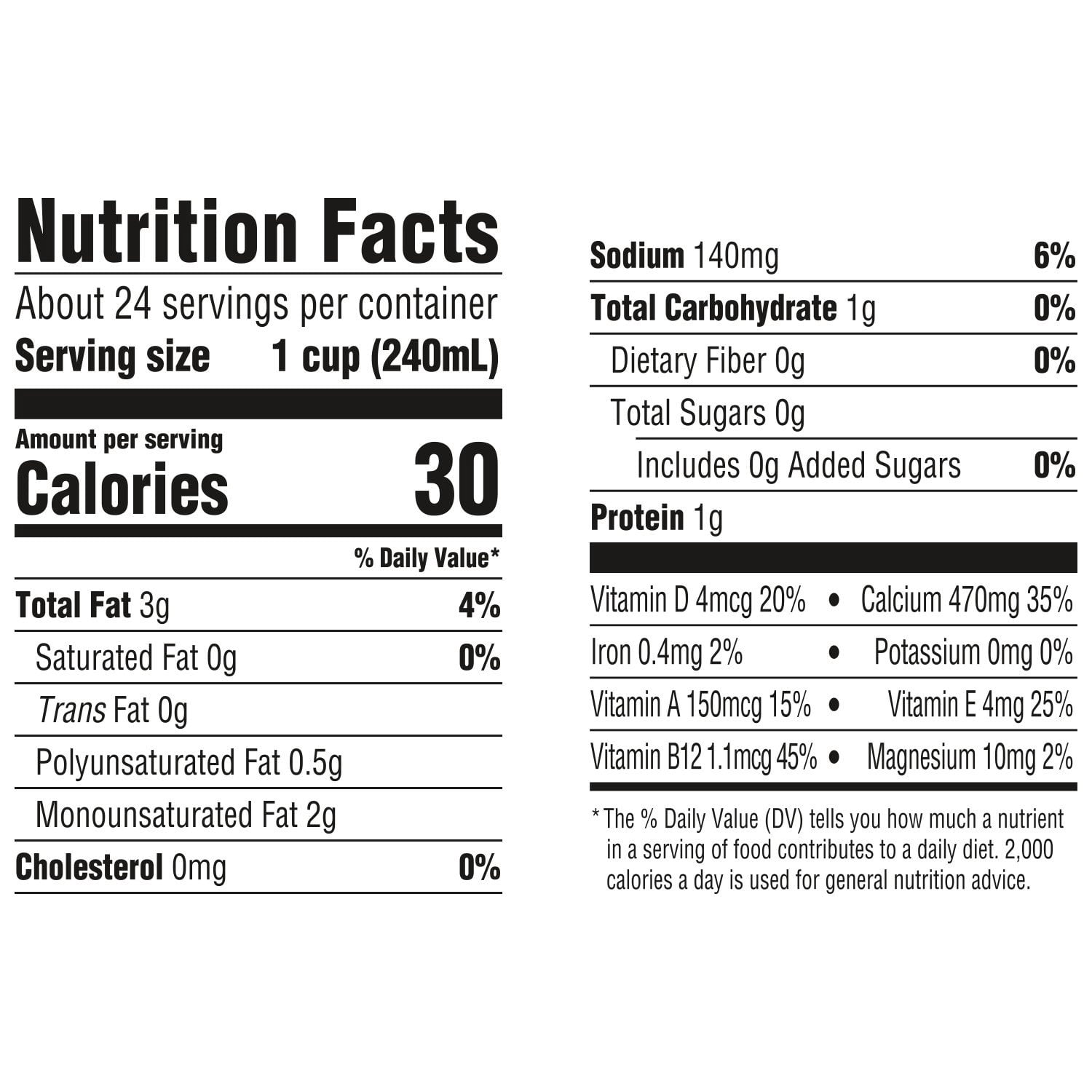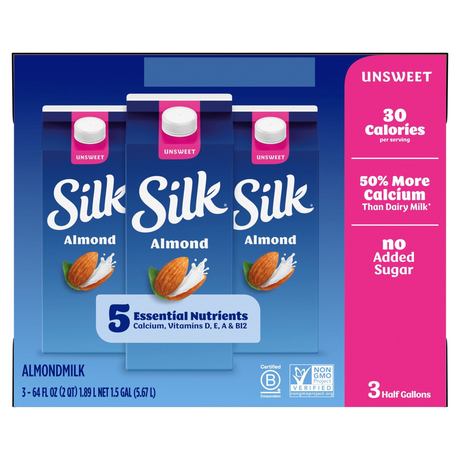 Despite its rich taste, Silk Unsweetened Almond Milk contains zero sugar and just 30 calories per serving. It's the perfect choice for those seeking a plant-based milk that doesn't compromise on taste or nutrition. Enjoy it poured over cereal or blended into your favorite fruit smoothies.