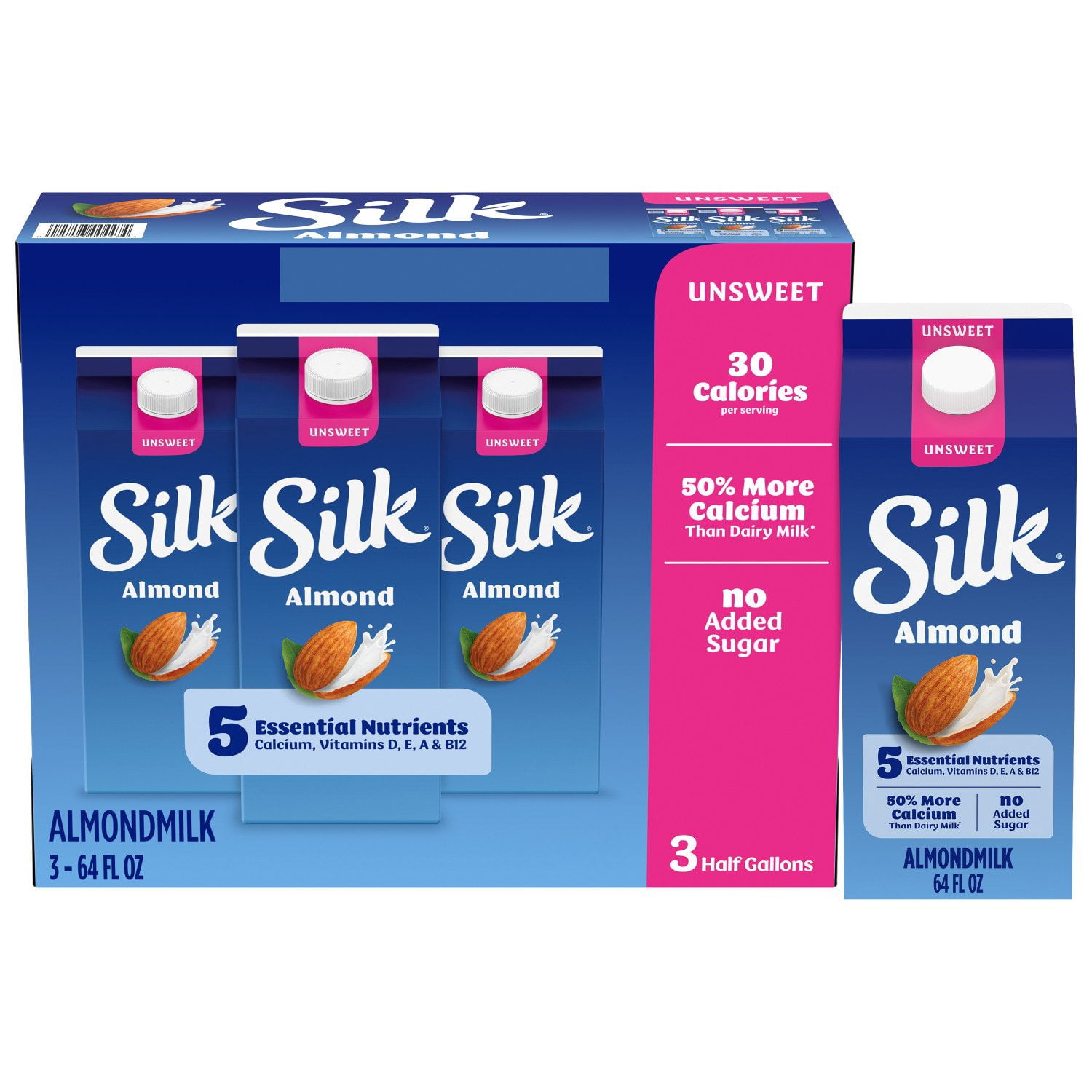 Silk Unsweetened Original Almond, 64 fl. oz., 3 pk.