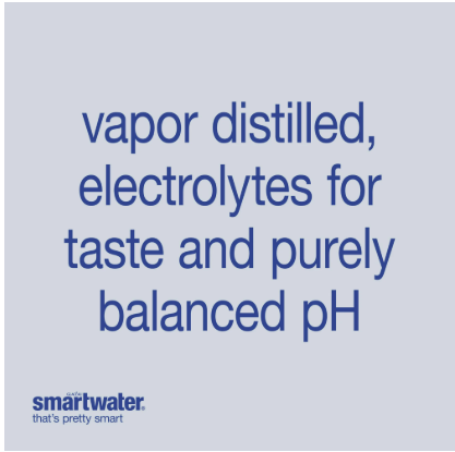 every drop of smartwater tastes pure and will leave you feeling refreshed. it’s everything you want from a bottled water—whether you’re on the move, working out or need a quiet moment for yourself, it’s a perfect way to satisfy your thirst and help you stay hydrated. each drop of smartwater is purified through vapor distillation, a process inspired by the clouds. that means nothing’s added except electrolytes for taste. a purely balanced pH and a pure flavor make it a smart way to hydrate throughout the day. no matter what it is that makes smartwater so satisfying, you can bet on every sip tasting pure and crisp, helping you stay hydrated and refreshed. for a sip of something different, smartwater comes in a variety of flavor options including cucumber lime and watermelon mint, each delicately infused with natural flavors. smartwater also comes in sparkling, alkaline and antioxidant variations for every need. this way, you can enjoy something a little different without losing that pure, crisp taste you love. smartwater—a smart way to hydrate. This product is: Naturally Decaffeinated, Purified Waters.