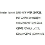 Ingredients: ham cured with water, dextrose, salt, contains 2% or less of sodium phosphates, potassium lactate, potassium acetate, sodium diacetate, sodium nitrite