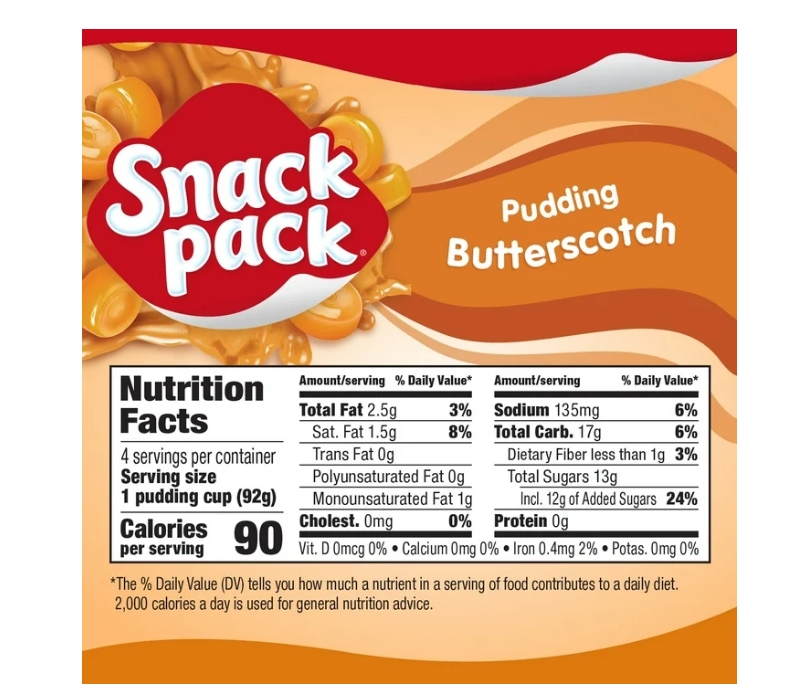 Delight in a quick and tasty treat any time of day with Snack Pack Butterscotch Pudding Cups. These pudding snacks offer a classic butterscotch flavor and creaminess that everyone is sure to love. These pudding cups are made with real nonfat milk and no preservatives or high fructose corn syrup. Each Snack Pack pudding cup is a convenient size and does not need to be refrigerated, making this a reliable treat that is easy to pack up and take with you to work for office snacks, in your kids’ lunch boxes for school snacks or anywhere for easy snacks and sweet treats. These Snack Pack pudding cups also make easy after-dinner sweet treats or desserts for the entire family. Try topping them with whipped cream and sprinkles, fruit or cookie crumbles for a creative and easy dessert. Enjoy the fun with Snack Pack!