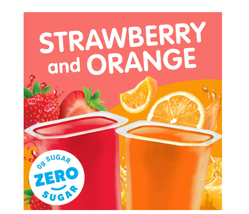 Zero sugar with zero compromise; these zero sugar gel cups have explosive strawberry and orange flavors everyone is sure to enjoy without all the sugar