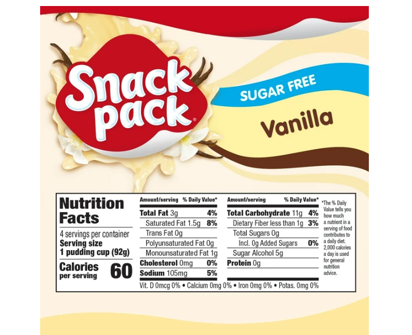 Zero sugar with zero compromise; these zero sugar cups have 40% fewer calories than regular Snack Pack Vanilla Pudding, with a delicious flavor and rich, creamy texture