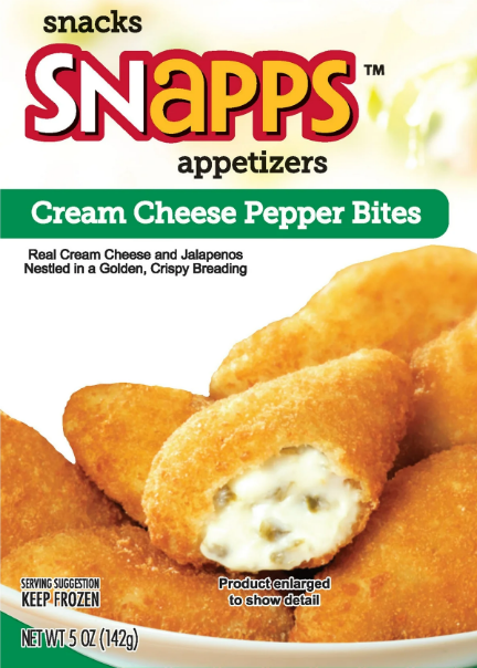 - Our Snapps crispy breaded appetizers are stuffed with creamy real cream cheese and jalapeno pepper bits