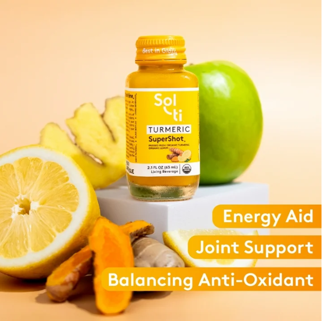 WELLNESS WITH EVERY SIP: One (1) 2.1 fl oz Sol-ti® Turmeric SuperShot, featuring 12.5 grams of organic turmeric and black pepper for maximum absorption and potency.
