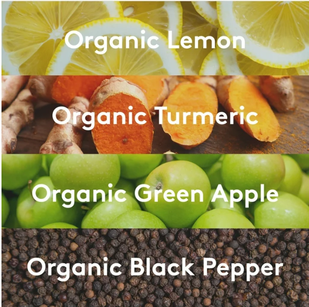 Organic Turmeric, Organic Lemon, Organic Green Apple, Organic Black Pepper