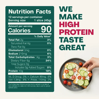 Meet your new and upgraded pantry staple. With 10g of complete, plant-based protein in every soft, delicious slice, it’s more than just a regular sandwich bread loaf—it’s a nutritional powerhouse. Packed and baked with all nine essential amino acids your body needs for muscle repair, growth, and a balanced diet, a source of complete protein is the perfect addition to your daily routine. Plus, with zero sugar and 6g of fiber, it’s the ideal choice for breakfast, lunch, or whenever you need a satisfying, protein-rich boost. Shelf-stable.
