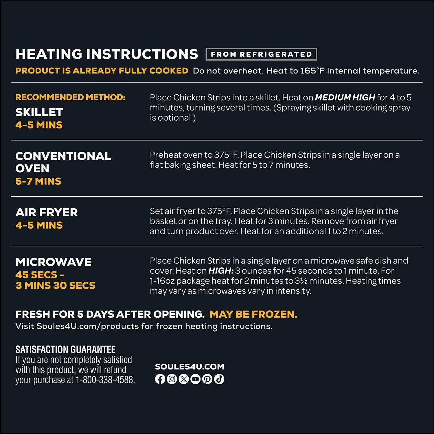 When cooked, Soules Kitchen Fully Cooked Chicken Breast Fajitas Strips (32 oz.) offers a beautifully seared exterior that adds an enticing textural contrast to its tender and juicy interior. It's an aromatic delight, filling your kitchen with a mouthwatering aroma that promises a satisfying meal.