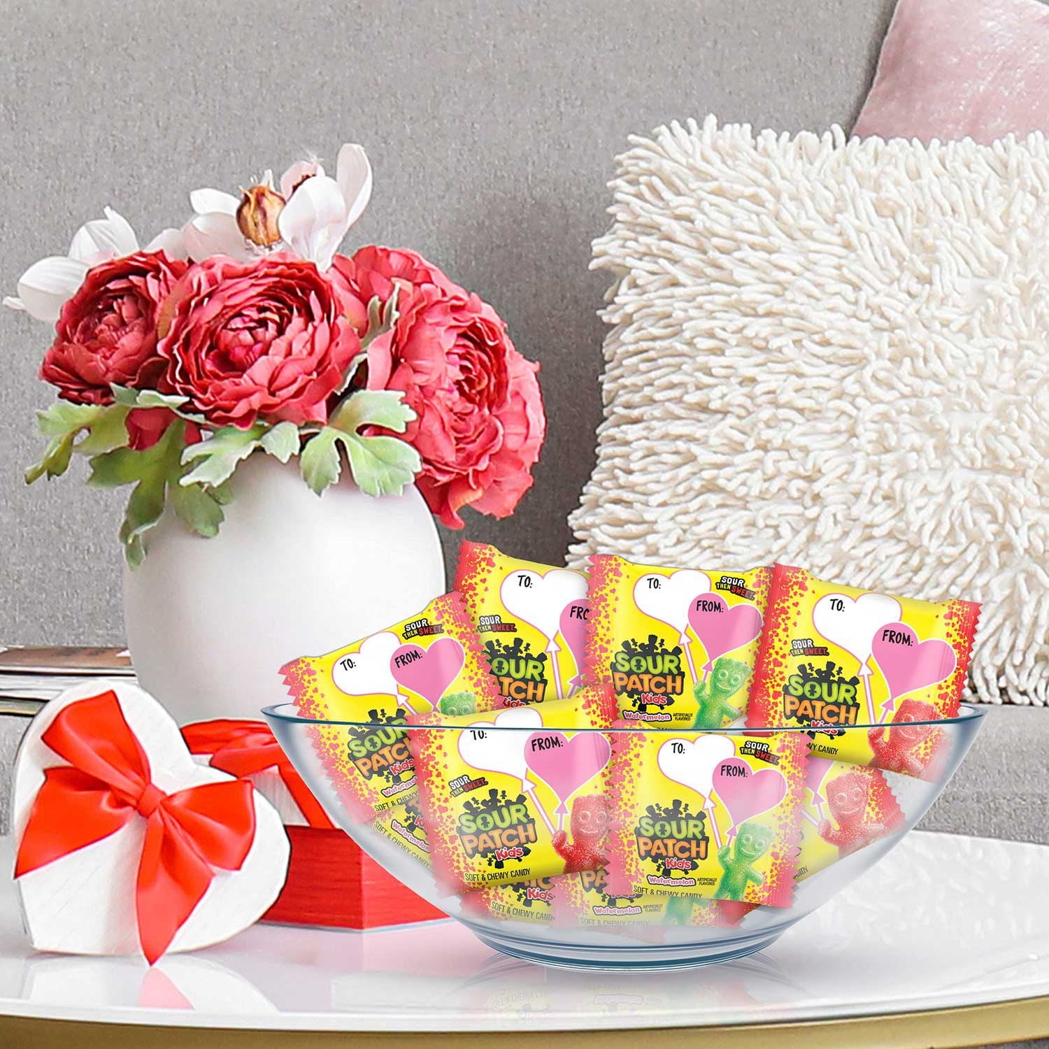Include a little fun in your Valentine's Day gifts with delicious, fruit flavored candy in unique kid shapes that give these sour candies their name. SOUR PATCH KIDS Watermelon soft candy packs an intense watermelon flavor for a blast to your taste buds. Each piece of sour watermelon candy is shaped like a watermelon slice to add excitement to snacking. A fat free food, this sour candy is fantastic for handing out at Valentine's Day parties and Valentine candy exchanges, tossing in backpacks and lunchboxes as sweet candy treats for loved ones, and keeping on hand for anytime Cupid's arrow strikes. This bulk candy bag contains individually wrapped candy snack packs that have "to" and "from" labels for easy gifting.