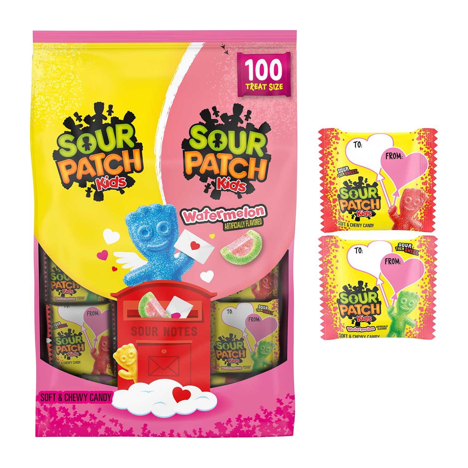 Sour Patch Kids Original & Watermelon Valentine's Day Candy, 100 pcs.