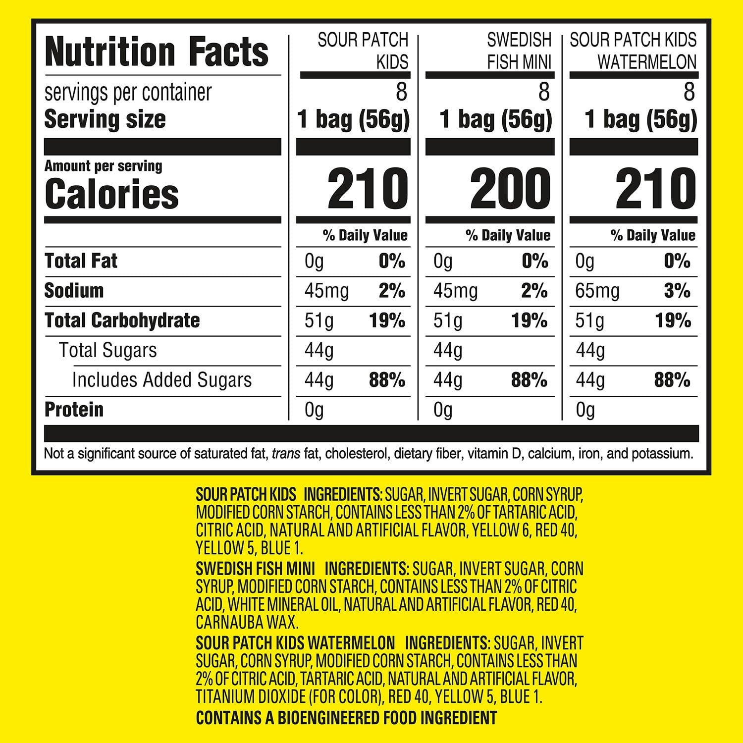 Ingredients: Sugar, Invert Sugar, Corn Syrup, Modified Corn Starch, Contains Less Than 2% Of Citric Acid, Tartaric Acid, Natural And Artificial Flavor, Titanium Dioxide (For Color), Red 40, Yellow 5, Blue 1. Contains a bioengineered food ingredient.