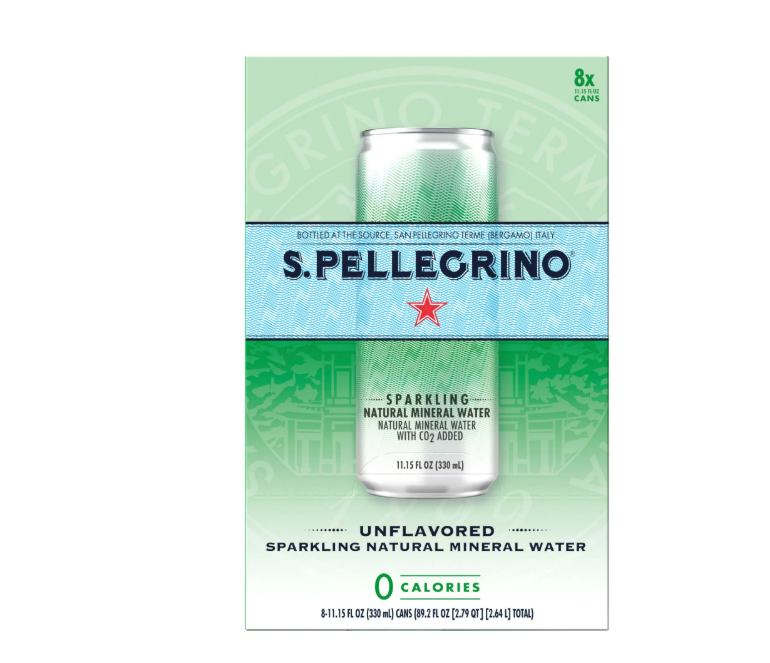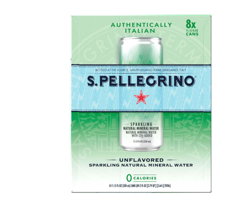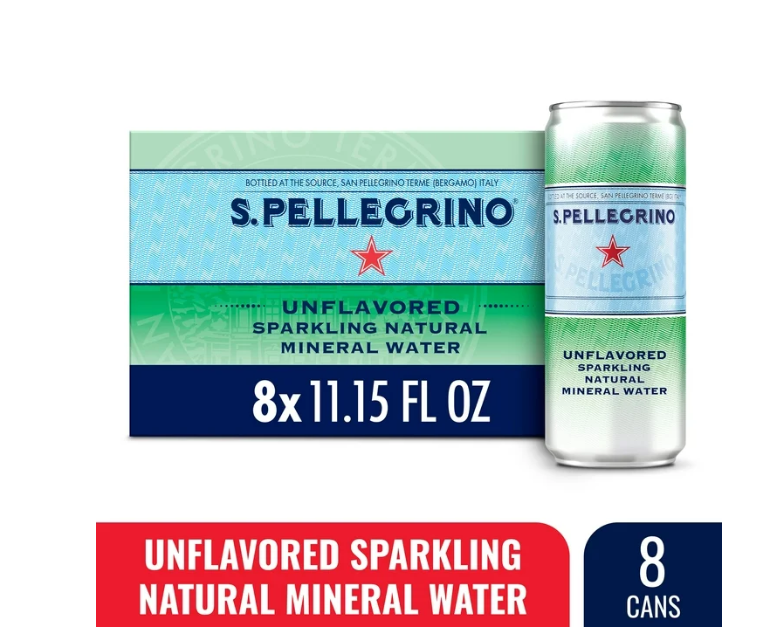 S.Pellegrino Sparkling Natural Unflavored Mineral Water, 89.2 fl oz, 8 Pack Cans