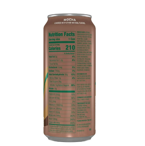 Brewed Starbucks Coffee (Water, Coffee), Reduced-Fat Milk, Skim Milk, Sugar, Maltodextrin, Dextrose, Taurine, Natural Flavors, Cellulose Gel, Panax Ginseng Root Extract, Sodium Ascorbate, Guarana (Paullinia Cupana) Seed Extract, Cellulose Gum, Niacinamide, Sucralose, Tricalcium Phosphate, Inositol, Carrageenan, Pyridoxine Hydrochloride (Vitamin B6), Riboflavin, Vitamin A Palmitate, Vitamin D3.
