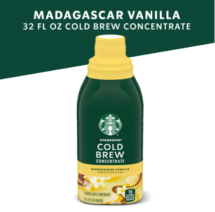 Starbucks Madagascar Vanilla Naturally Flavored, Bottled Cold Brew Coffee Concentrate Drink, 32 oz