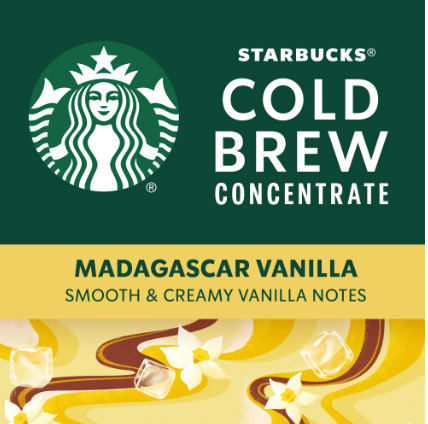 Medium-roast Starbucks Madagascar Vanilla Cold Brew coffee, smooth with a hint of creamy vanilla