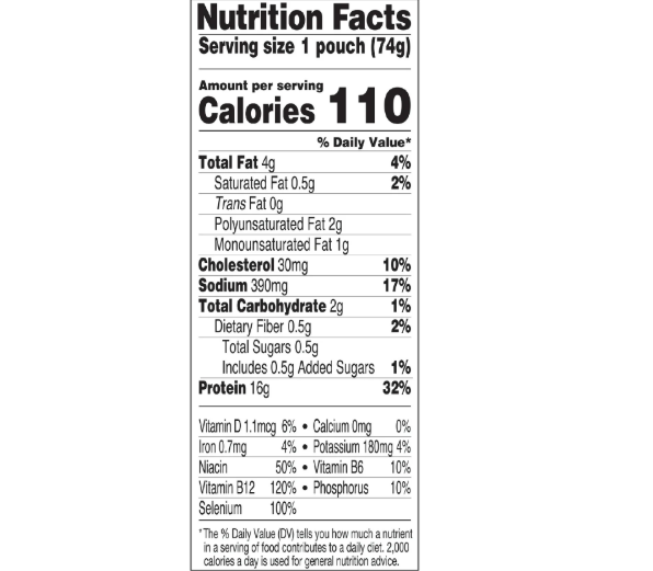 Light Tuna, Water, Sunflower Oil, White Vinegar, Contains 2% or Less of the Following: Wheat Flour (Bleached Enriched Wheat Flour, Niacin, Reduced Iron, Thaimine Mononitrate, Riboflavin, Folic Acid), Vegetable Broth, Sugar, Modified Corn Starch, Salt, Garlic Powder, Autolyzed Yeast Extract, Spices, Onion Powder, Mustard Seed Flour, Caramel Color, Natural Flavors.