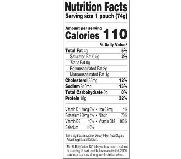Try our select cuts of premium wild caught tuna seasoned with rich and smoky flavor. This protein-packed snack is the perfect addition to any sandwich or wrap & dash; how's that for convenient? With 110 calories and 18g of protein, this nutrient dense tuna pouch is the perfect fit for today's active lifestyle. It also works well with Keto, Mediterranean and Weight Watchers diet plans - just tear, eat and go!