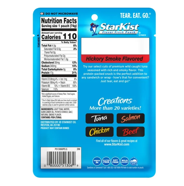 StarKist Tuna Creations, Hickory Smoked, 17g Protein, 2.6 Ounce Pouch