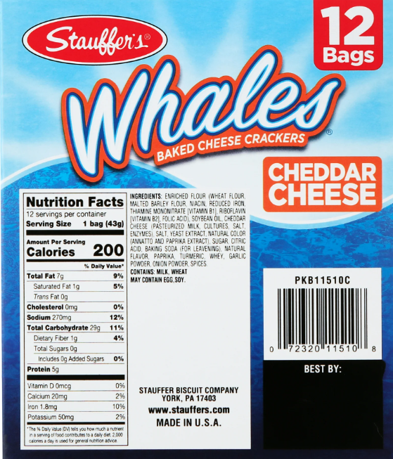 Stauffer's Whales Cheddar Cheese Crackers, 1.5 oz, 12 Count