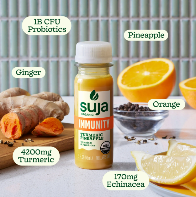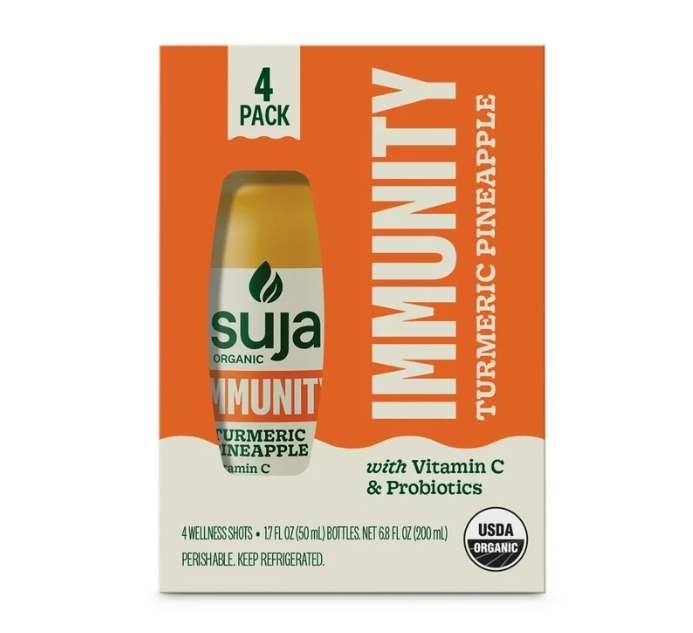 WELLNESS SHOTS: Four (4) 1.7 fl oz bottles of Suja Organic Immunity Turmeric Pineapple Shots