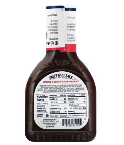 Sweet Baby Ray's Hickory & Brown Sugar Barbecue Sauce 18 oz